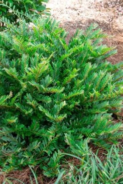 ‘Jewel Box’ is a compact Distylium with a rounded form and fine texture. Arching stems are loaded with soft, blue-green leaves. A very nice alternative to boxwood, inkberry, or small-leaved holly. A perfect plant for home foundation plantings. A member of the witch hazel family, it produces petite red flowers that appear in late winter. Â No other plant we’ve seen looks like Jewel Box Distyilium so it’s sure to be a standout in your landscape!Â