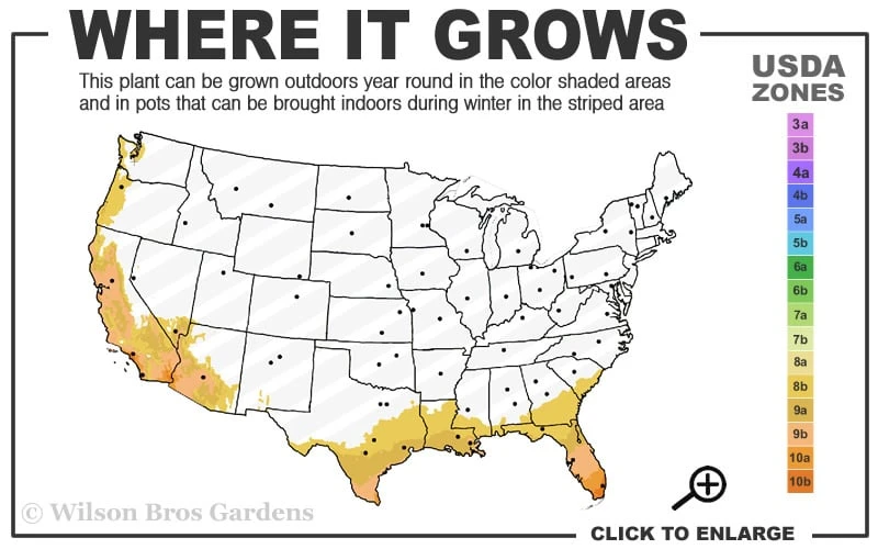USDA Plant Hardiness Zones:Â 8b-11 Â Find Your Zone